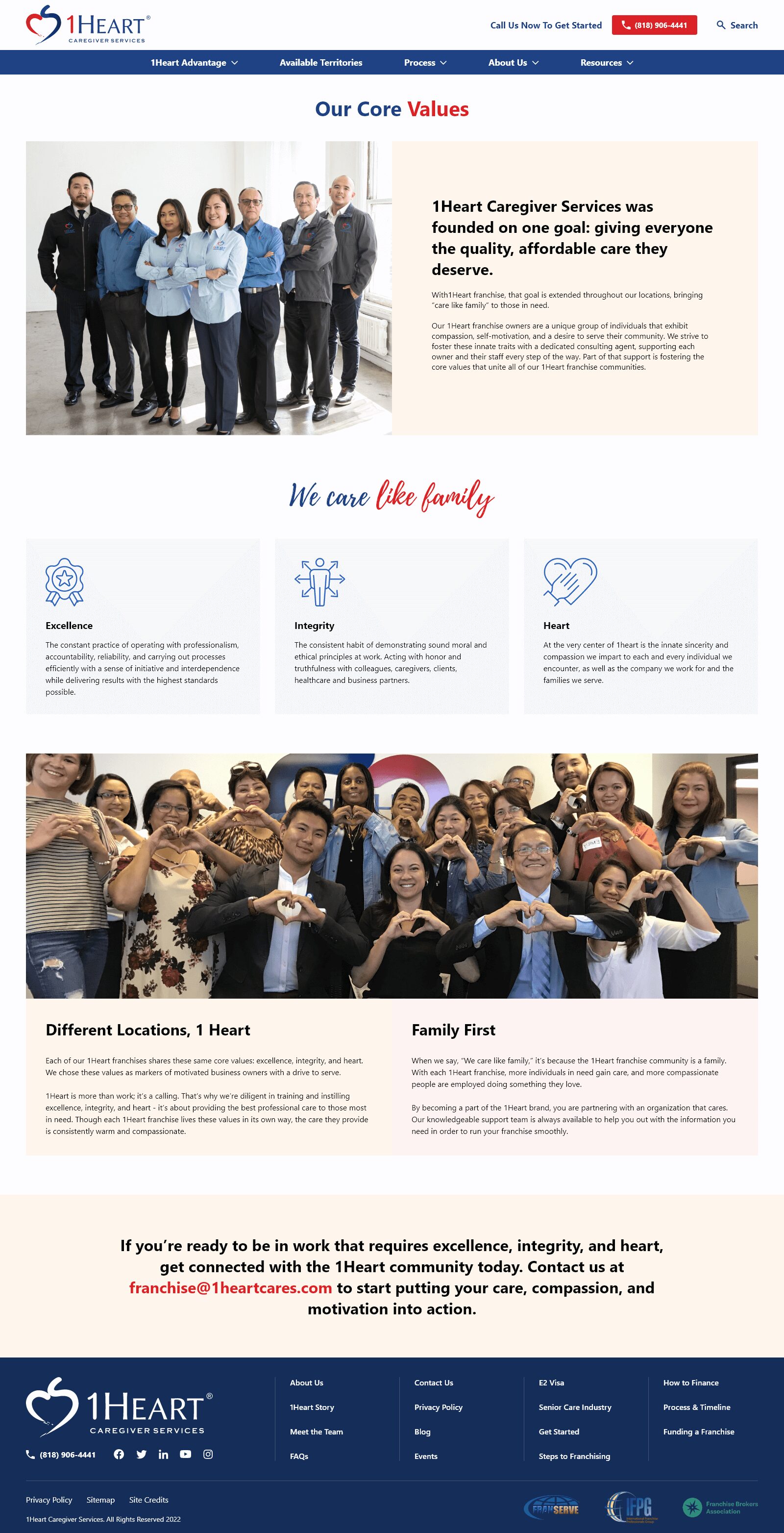 1Heart Franchise is a franchise provider of senior caregiving services and a subsidiary of our marketing client 1Heart Caregiver Services LLC. This client, through its franchises, provides affordable care services to seniors. The client sought Coalition’s expertise in developing a robust, lead-generating website that will build brand awareness, improve conversion rates, have a user-friendly layout, and streamline the brand’s content.