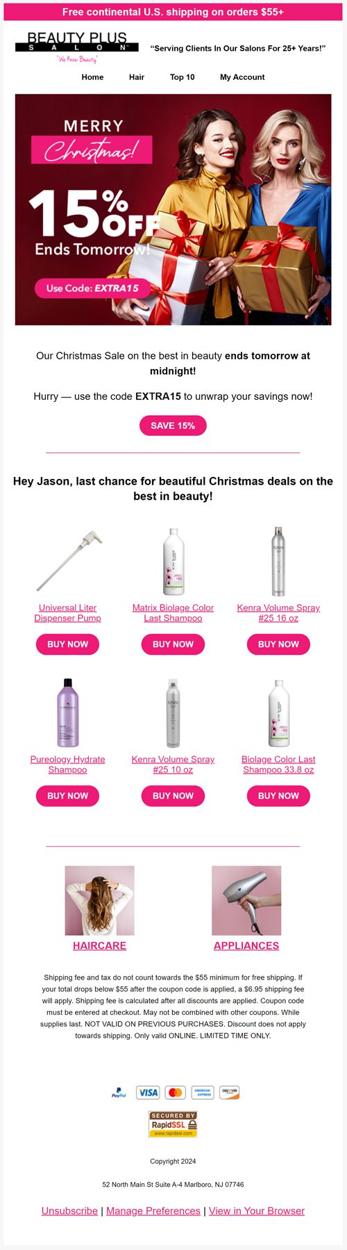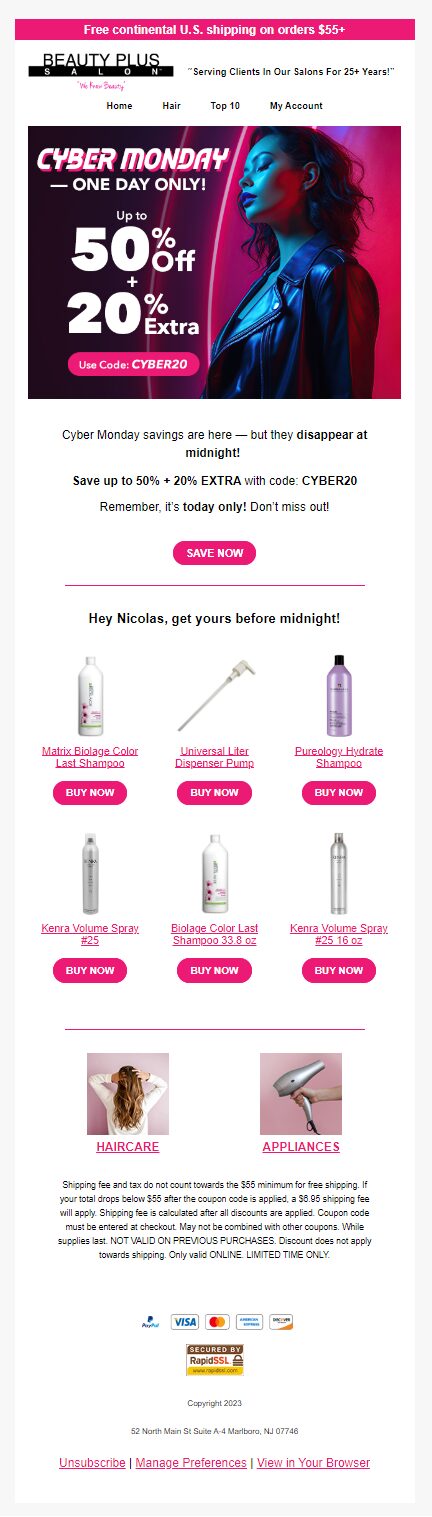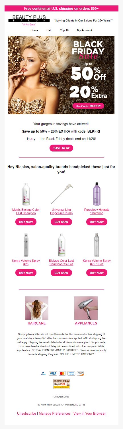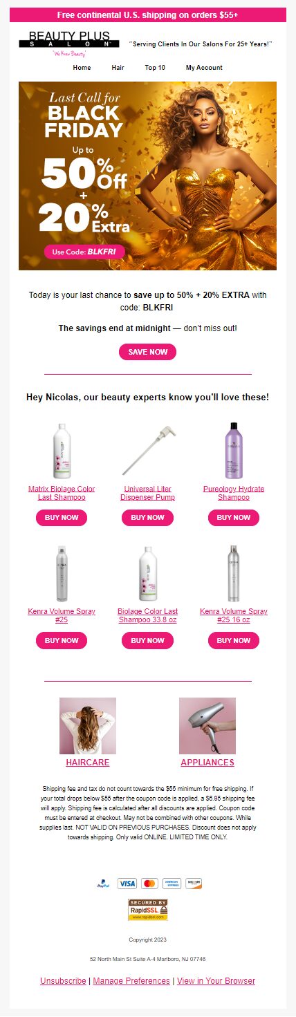 For more than two decades, Beauty Plus Salon has supplied its customers with high-quality beauty and hair care services and products from its brick-and-mortar stores and salons. After seeing a decline in the demand for their salon care services, the client decided to make a digital pivot in 2015. A new website was developed, and soon after Newsweek named www.beautyplussalon.com as one of the fastest growing websites in the United States. Despite this accolade, the client was not experiencing great success in their email marketing campaigns. They contacted us for full service email marketing to help revamp the brand’s campaigns, grow their subscriber list, and increase revenue.