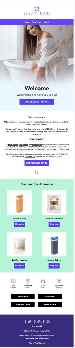 We built an email pop-up to garner new email subscribers, a custom email template that aligns with Beauty Image’s branding and email best practices, and an email calendar. Weekly campaigns focused on highlighting the brand’s selling points, products and benefits, events, sales, and educational content.