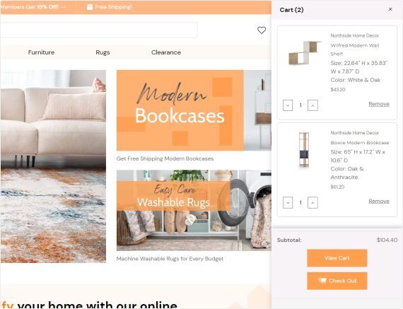 The custom mini-cart drawer feature slides to the right. Customers can change order quantities here without having to go to the checkout page.