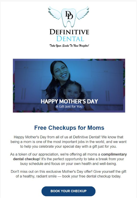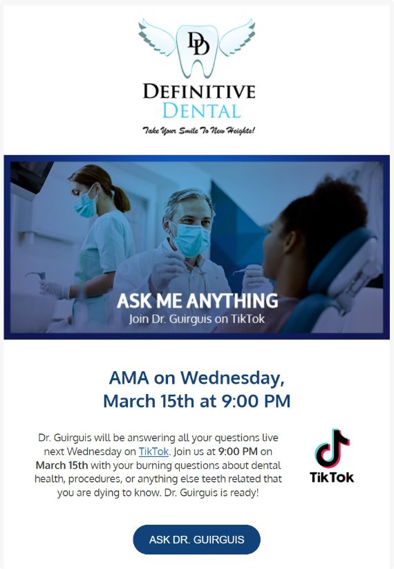 Definitive Dental also faced challenges in engaging subscribers who signed to their monthly newsletters. There was no regular cadence of email and SMS communication. The client wanted to improve the brand’s communication across email and SMS that will remind existing and prospective patients of dental procedures, keep them updated with new or special offers, and monthly tips.