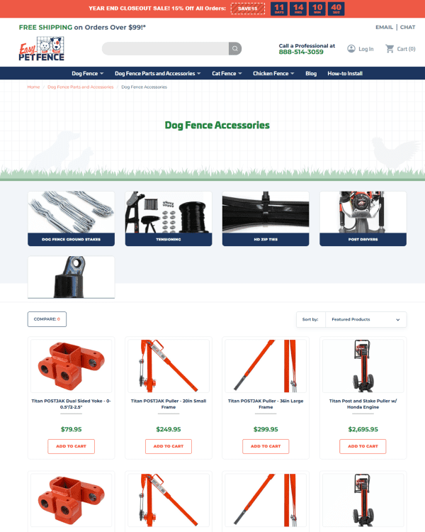 Easy Pet Fence, a company specializing in pet containment solutions, sought a comprehensive overhaul of its ecommerce website to improve user experience, streamline content management, and enhance the website’s performance. The client contacted us to build and launch a website quickly for an event. Working with the Easy Pet Fence team, we developed a solution that focused on maximizing real estate for key product information, simplifying product page layouts, and integrating dynamic content. The final product delivered a user-friendly, dynamic, and mobile-optimized BigCommerce website that not only met but exceeded client expectations for both functionality and aesthetics.