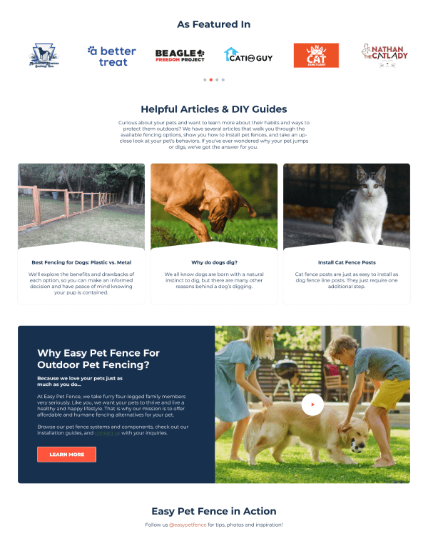 With enhanced SEO, accessibility, and dynamic content, Easy Pet Fence now exceeds client expectations, positioning the brand for continued growth in ecommerce.