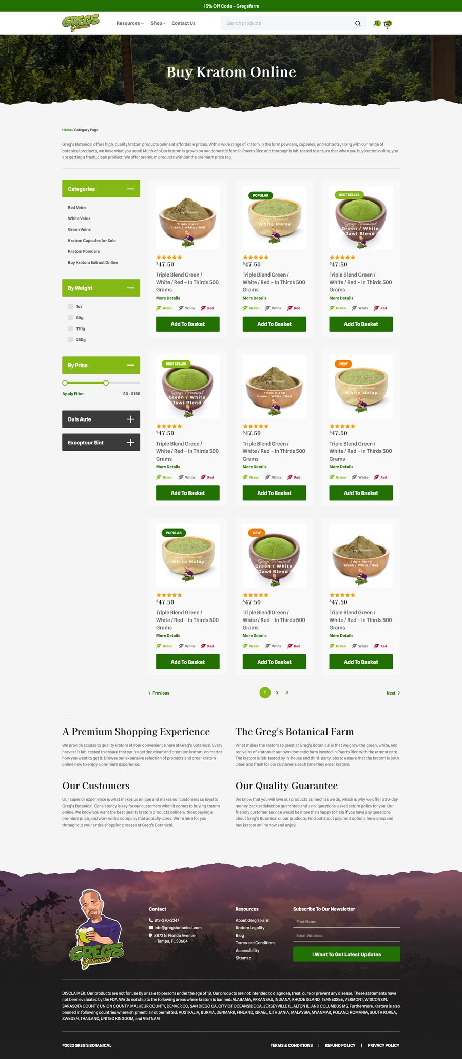 The client anticipated industry-wide changes and wanted to be prepared for them. They believed that kratom was gaining in popularity and lagged slightly behind cannabis. Anticipating future growth in kratom consumption in the USA, Greg’s Botanical wanted to showcase and educate their website’s visitors about their lab-tested, fresh, and premium kratom capsules, extracts, gummies, candies, and toffee.