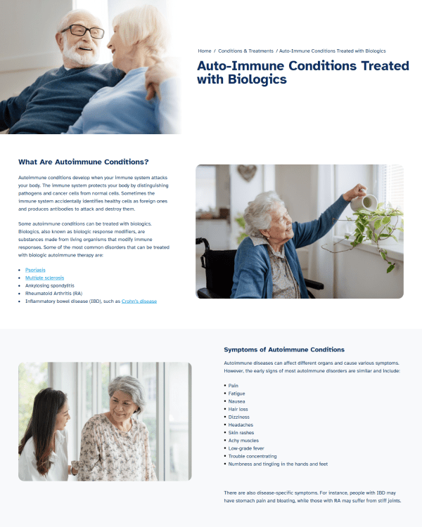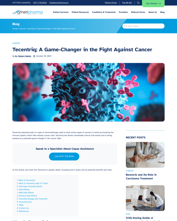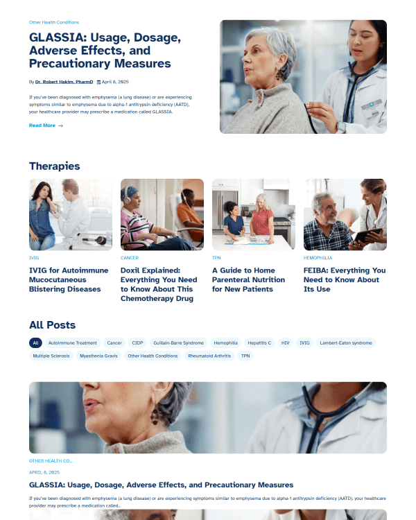 SEO strategy focused on improving AmeriPharma’s online visibility for critical keywords, particularly in the competitive field of specialty medications. Site content was optimized for keywords such as “IVIG therapy,” “oncology medications,” and “specialty pharmacy”. The blog section was also revamped to function like a news site, featuring content related to disease states, medications, and industry updates. Articles were carefully crafted to target keywords and help improve the website’s ranking for searches related to rare disease states and specialty medications.