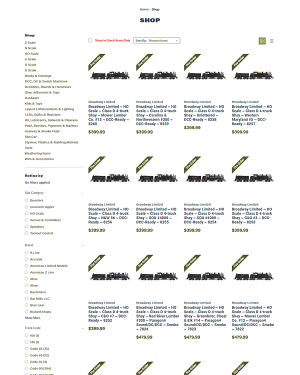 We updated the homepage by replacing the Build Your Model Railroad section with a dynamic rotating carousel to highlight promotions and featured products. The header was redesigned with a repositioned logo, adjusted colors, and a larger search bar for better visibility. These updates improved the overall aesthetics and usability of the site.