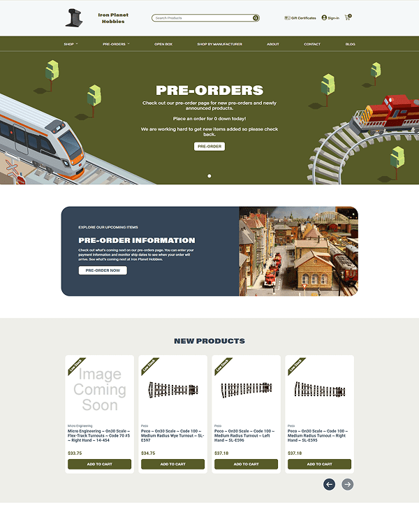 Iron Planet Hobbies, a specialty ecommerce store catering to model railroad enthusiasts, sought our expertise to improve their website’s functionality and user experience while also enhancing their email marketing strategy. While the website was already built on BigCommerce, our goal was to refine its usability, streamline navigation, resolve checkout issues, and optimize the shopping experience. Additionally, we implemented a robust email marketing system to engage customers, boost conversions, and drive repeat purchases.