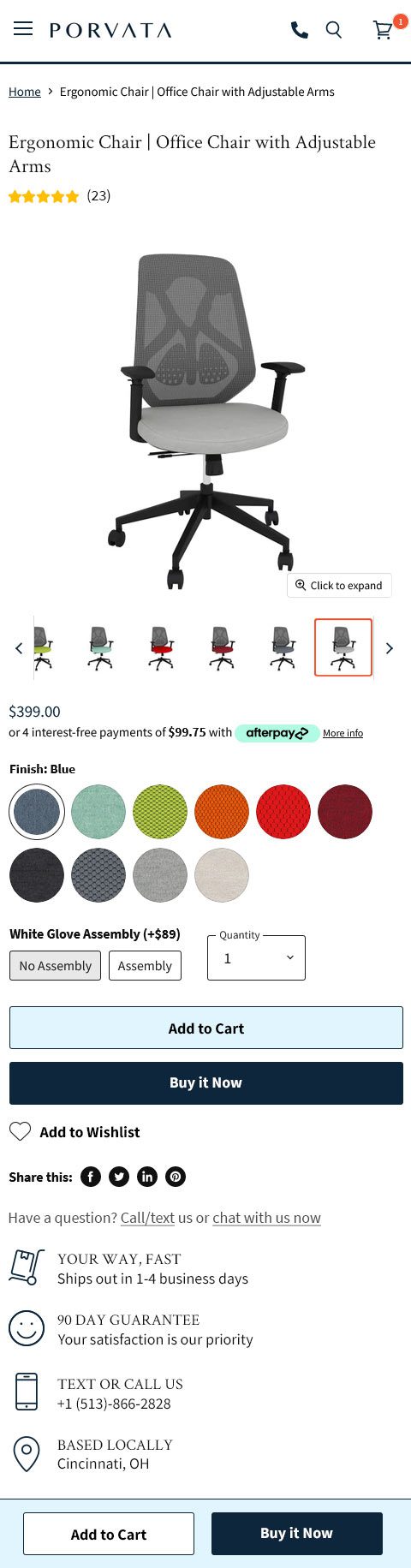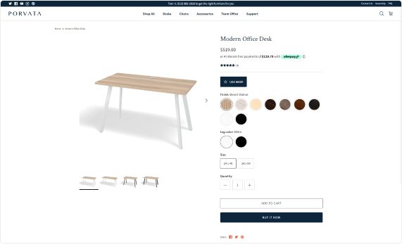 Using a modern Shopify Plus theme, we updated the site’s product page layout. Text on images on the product pages are now readable. We also added value propositions such as free shipping on all products, 90-day guarantee, fast shipping, and made sure that store contact information was prominent on the site. Add to Cart, Buy It Now, and social sharing calls to action (CTAs) were also added to product pages. Site users can also utilize an image slider to view other products.