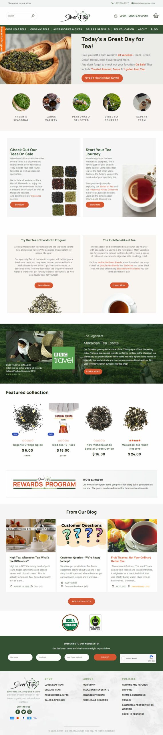Once we completed silvertipstea.com, our marketing team immediately optimized the brand’s home and category pages, linked their social media channels, and launched their SEO, PPC and Email campaigns.