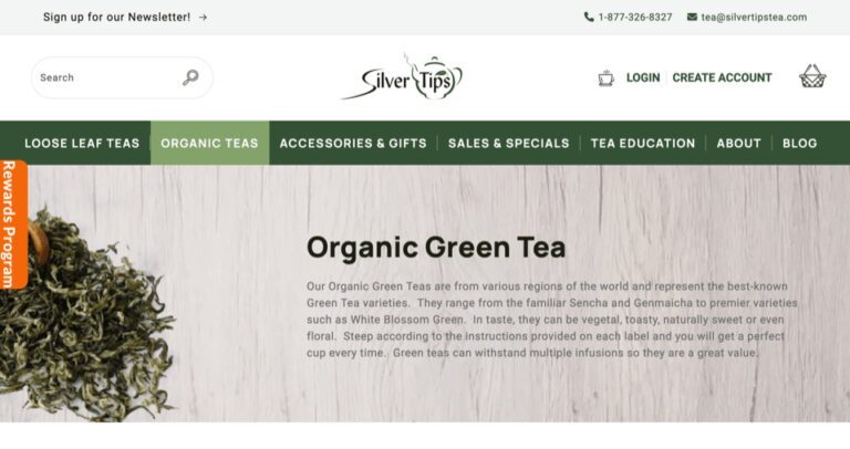 The blog category section of silvertipstea.com has an adequate balance of images and text for a better, more informed shopping experience.