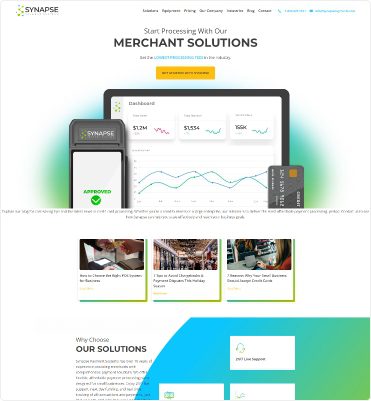 Synapse Payments provides services that enable clients to accept card payments from their customers with reduced merchant fees. The client needed a robust site to obtain and process new leads, provide information about the services they offer and how these services work for them, and be able to accept new client’s documents needed for processing. Our team of experts worked on designing and developing a WordPress website for this brand.